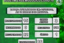 A Prefeitura Municipal de Esmeralda, por meio da Secretaria Municipal de Saúde, informa que, até as 11 horas e 30 minutos desta quinta-feira (31), o município registrou mais um caso positivo para o COVID-19. Totalizando 86 casos positivos para o novo coronavírus, e 15 casos estão sendo monitorados em isolamento domiciliar.