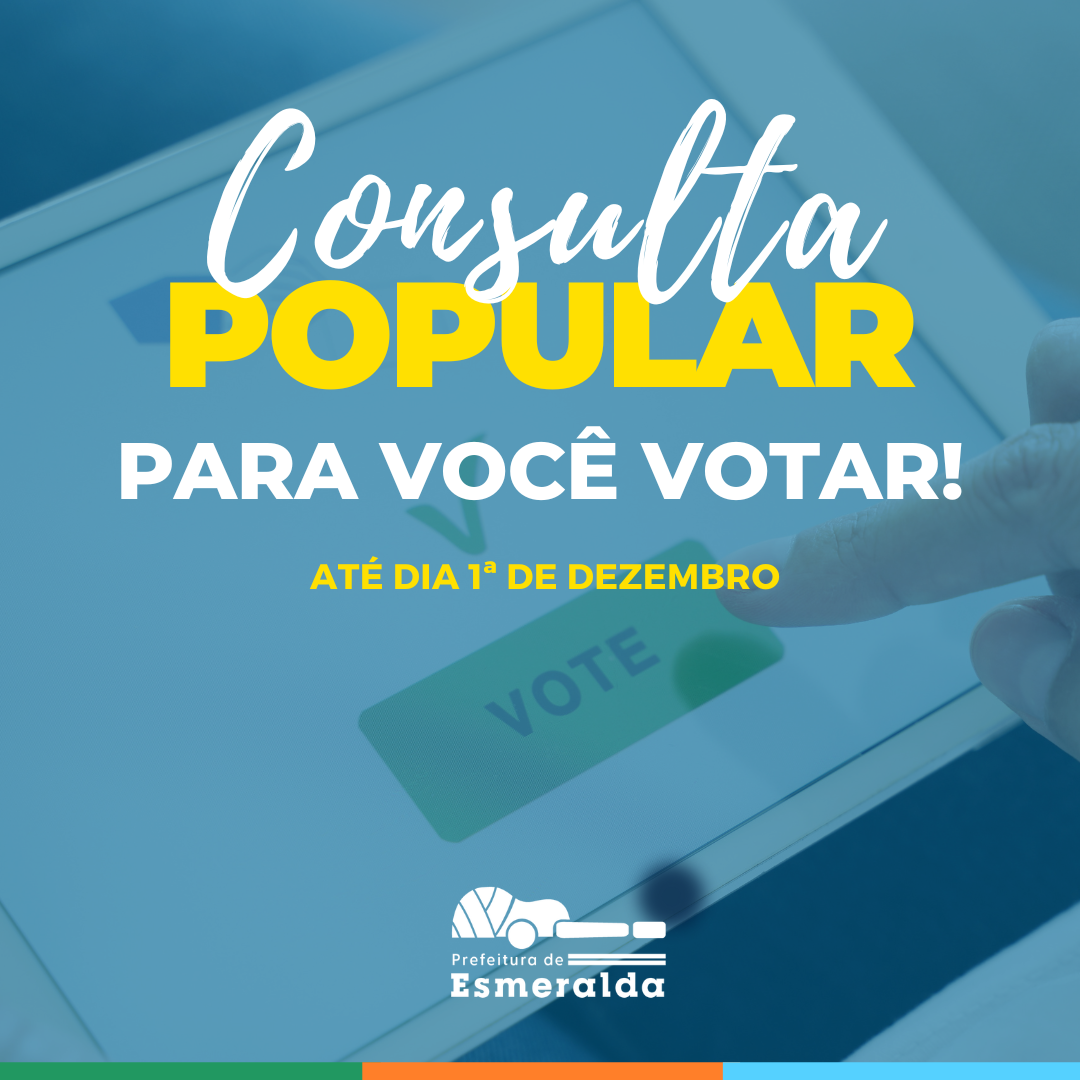 A Consulta Popular 2023 está com votação aberta. A Prefeitura de Esmeralda convida toda a população esmeraldense a votar. A votação vai até sexta-feira (1° de dezembro). O município participa com cinco propostas. São elas:
