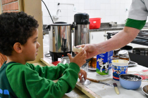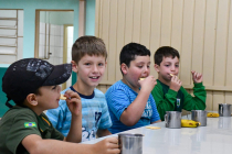 É feito de acordo com as orientações do FNDE - Fundo Nacional Desenvolvimento da Educação, ou seja seguem o cardápio elaborado pela nutricionista responsável pela alimentação escolar, aqui de Esmeralda, Elisabeth Biasi Furlanetto, respeitando os hábitos alimentares locais e utilizando alimentos da Agricultura Familiar do município e região