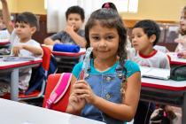 A dentista da USB Maria Eduarda vem realizando atividade coletiva de escovação supervisionada e fluoretação dentária.