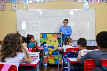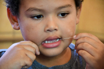 A atividade visa promover a aproximação das crianças com a saúde bucal e com o hábito diário da escovação de forma adequada.