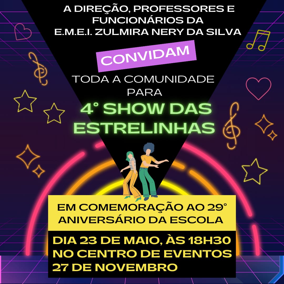 Venha comemorar conosco e com nossas estrelinhas, o 29º aniversário da EMEI Zulmira Nery da Silva!